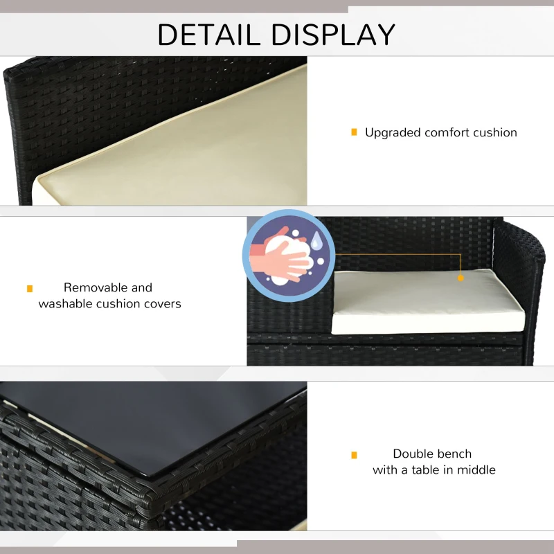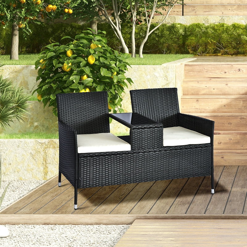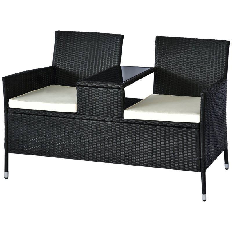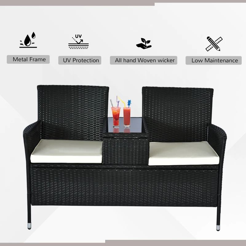 Best 2 Seater Rattan Campanion Chair Wicker Loveseat Outdoor Patio Armchair with Drink Table Garden Furniture – Black