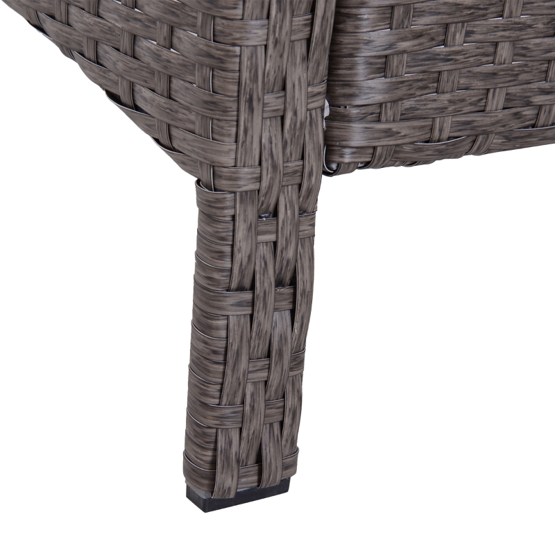 FIVE PIECE SET: Includes two armchairs, two footstools and a matching coffee table. || COMFORTABLE: Two thick and plush padded cushions on each seat ensure hours of wonderful relaxation. || HAND-WOVEN RATTAN: Low maintenance and resistant to weather damage. || METAL FRAME: Provides extra stability and strength. LOW MAINTENANCE: Easy to clean for little hassle. Keeps the set looking fresh all year around. || DIMENSIONS: Chair: 75H x 71L x 67Wcm. Footstool: 40H x 67L x 51Wcm. Table: 42H x 46L x 46Wcm. MAXIMUM WEIGHT CAPACITY: Chair: 160kg. Footstool: 70kg. Table: 30kg. ASSEMBLY REQUIRED.