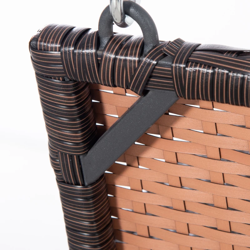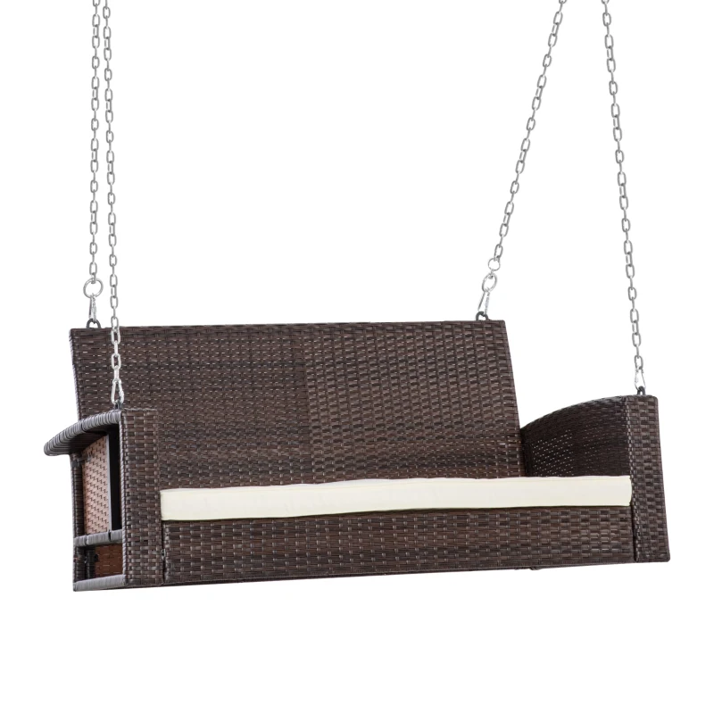 TWO-SEATER OUTDOOR SEATING: Porch-style rattan swing seat to hang where you want – a great addition for you to sit and relax. || COMFORTABLE: Curved armrests, a high-backrest and padded seat cushion for you to sit for extended periods. Removable and washable cover for hygiene. || WEATHER-RESISTANT: Rattan garden bench is easy to maintain, wrapped over rattan over a rust-resistant galvanized steel frame. || TWO HANGING CHAIN: Holds you securely, supports the garden swing seat. DIMENSIONS: 27L x 65W x 60Hcm. || MAXIMUM LOAD 250KG. ASSEMBLY REQUIRED.