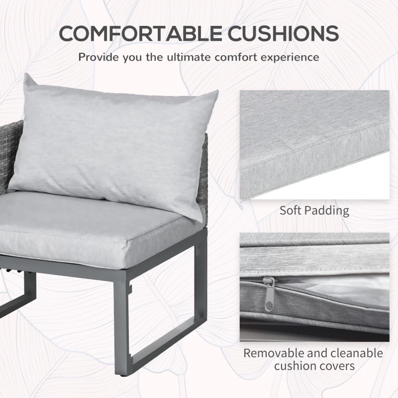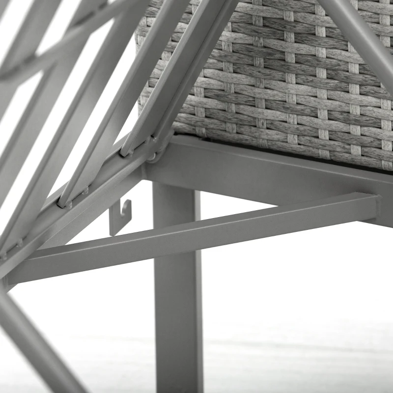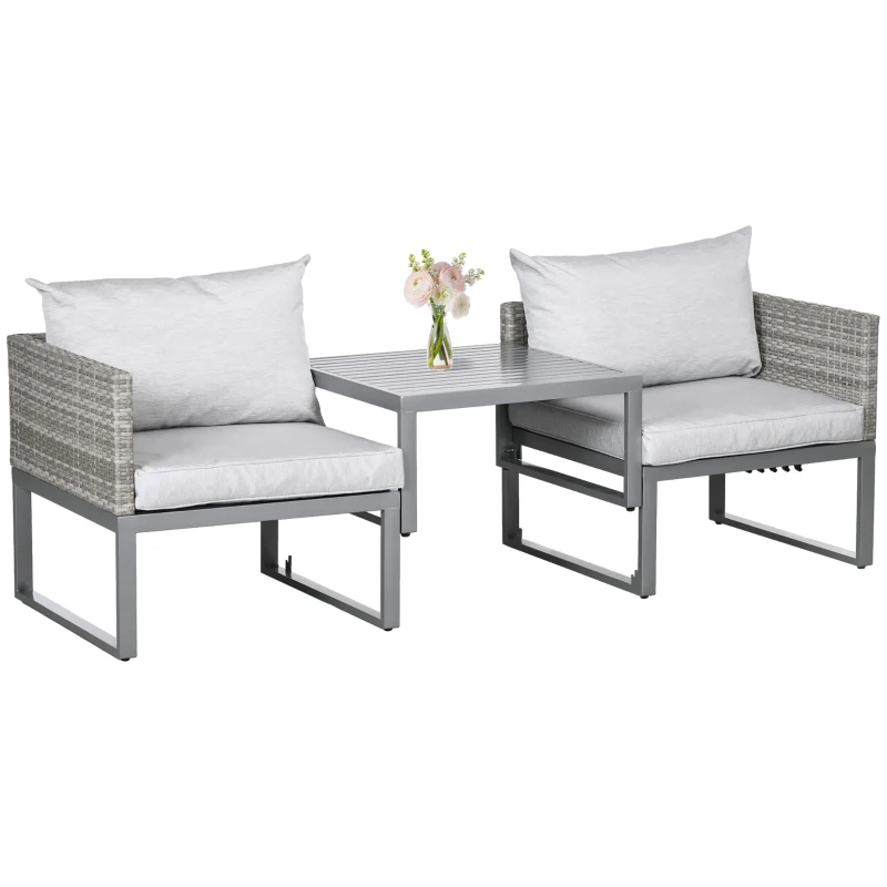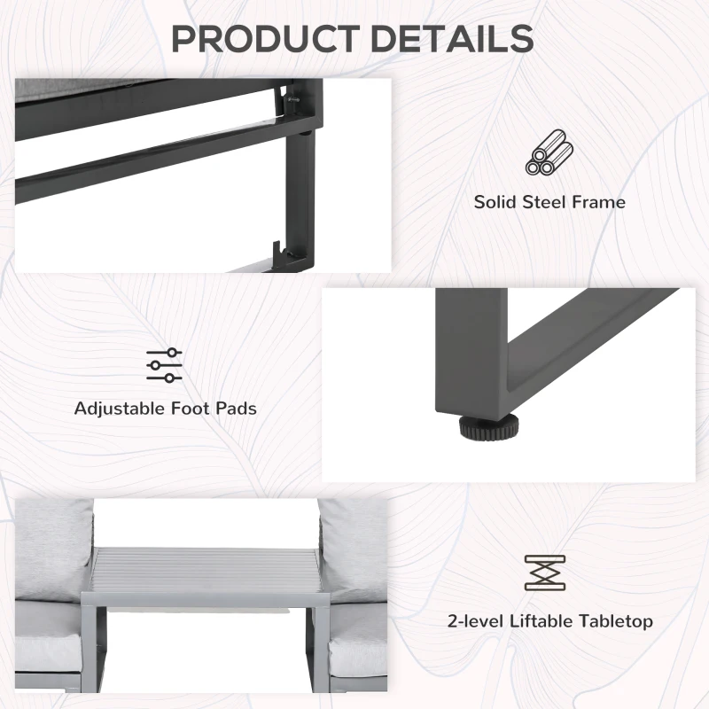 3 PCS RATTAN SET: This outdoor rattan bistro set is composed of 2 single sofa and a circular coffee table to place small decor, snacks, and beverages – the ideal spot for relaxing with a friend in the sun and catching up over a coffee || MULTI-PURPOSE SET: This balcony furniture coffee table is adjustable in two levels. You can adjust the three-piece set to the same height, add all cushions to become a loung bed; or raise is to be the coffee chair table set || 5-LEVELS ADJUSTABLE: The single sofa on the right is adjustable in 5 levels. When used as a lying bed, you can adjust the angle according to your needs for more comfort. The included 3 thick padded cushions and 2 backrests provides extra comfortable and soft experience || WICKER RATTAN & METAL FRAME: The bistro table and chairs set in a beautiful mixed grey finish, it is resistant to UV and mild weather damage, prolonging its lifespan for years of use. Powder coated steel for extra strength, it provides a solid foundation for you to sit. All feet have screws to elevate and protect the main frame, as well as keeping it level and balanced on the floor || DIMENSIONS: Chair: 63H x 69W x 69Lcm. Table: 33/55H x 65L x 65Wcm. MAXIMUM LOAD: Single chair: 160kg. Table: 110kg. ASSEMBLY REQUIRED.