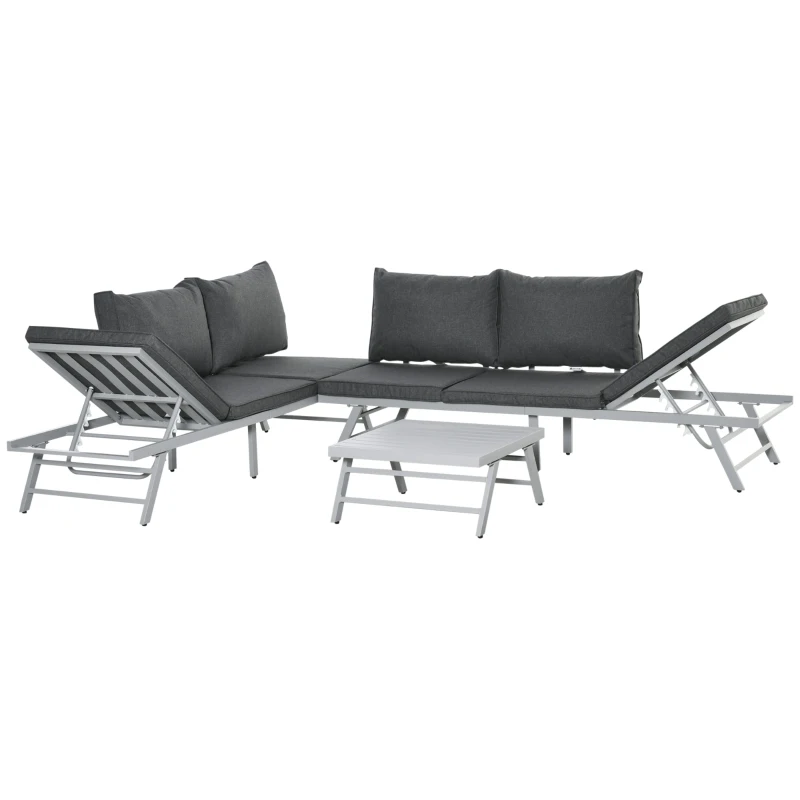 THREE-PIECE SET: The garden furniture sets includes two three-seater sofas and a matching coffee table, giving plenty of room for friends and family to relax together in the garden/outdoors. || CONVERTIBLE GARDEN SOFA: Outdoor corner sofa both features four-level adjustable back, transforming into a lounger to switch up the layout and relaxation style. Backs can also be detached and moved into a different position. || STEEL FRAME: The backyard furniture’s solid steel frame supports the weight properly when being used. Cushions on the seat and back of the corner garden seating for comfort, covers are removable and washable. || FOOT PADS: The balcony furniture also has foot pads to protect the floor. DIMENSIONS: Sofa: 70H x 198W x 70Dcm. Table: 30H x 62W x 62Dcm. || MAXIMUM LOAD: Sofa: 330kg. Table: 50kg. ASSEMBLY REQUIRED.