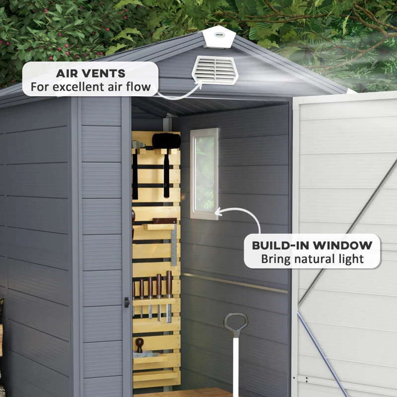 Best 4.4ft x 6.2ft Aluminium Frame and Plastic Wall Shed, with Foundation – Grey