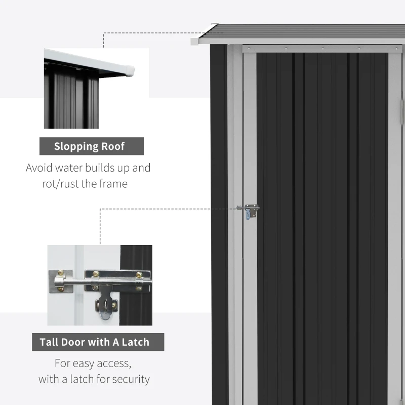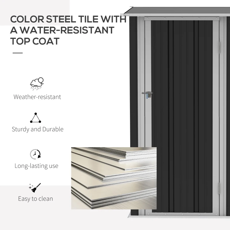 Best 5ft x 3ft Metal Garden Storage Shed, Outdoor Tool Shed with Sloped Roof, Lockable Door for Tools, Equipment, Grey