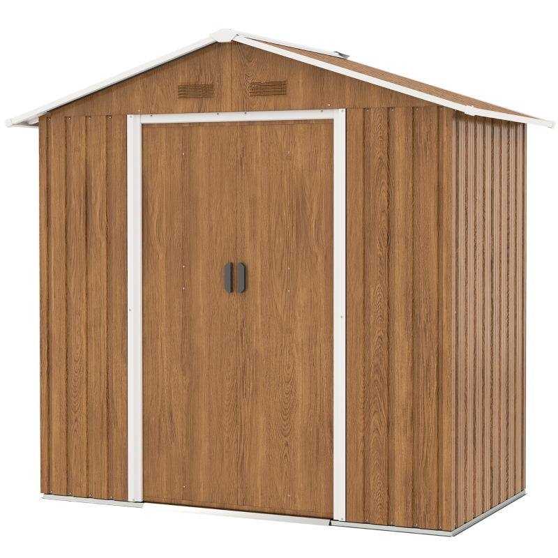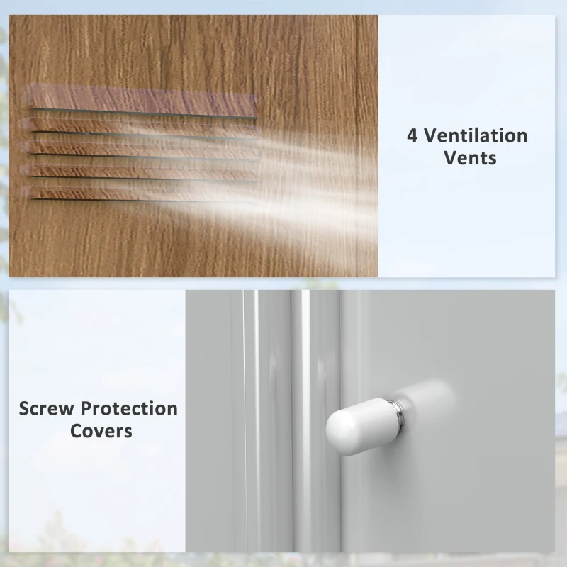 Spacious inner space: Outdoor storage shed has plenty of room for gardening equipment, tools and other outdoor accessories. || Galvanised steel: This garden tool shed is built to be strong and firm to withstand extended use in your garden; Galvanised finish for long-lasting performance and reliability. || Double-door shed: This galvanised outdoor shed is lockable for added safety and security when you’re away from home. Easy access while keeping everything stored inside out of sight. Lock not included. || Ventilation slots: The small shed is equipped with four vents, two on the front and two on the back, promoting air circulation to prevent moisture and mildew buildup. || Dimensions: 196H x 194L x 110Dcm. Inside: 183L x 97Dcm. Door: 156H x 80Lcm. Assembly required. Three people required for installation in approx. four hours – ALWAYS wear gloves. Do not build during windy weather conditions.