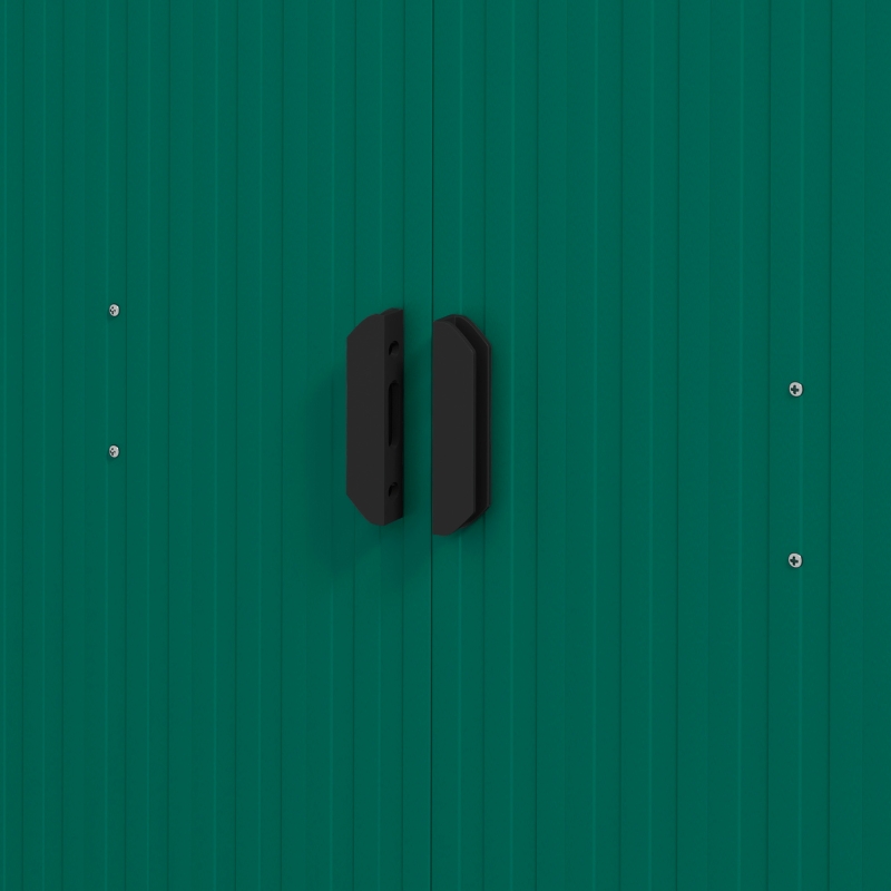 Large inner space: Outdoor storage shed has plenty of room for gardening equipment, tools and other outdoor accessories. || Galvanised steel: This garden tool shed is strong and durable for extended use in your garden. || Double-door shed: Lockable for safety when you’re not at home. Easy to access this galvanised shed, keeping everything out of sight. Lock not included. || Ventilation slots: Two on the front and two on the back – allow air to circulate around inside the tool shed. Helps prevent moisture and mildew build-up. || Dimensions: 184H x 194L x 110Dcm. Inside: 183L x 97Dcm. Door: 154H x 82Lcm. Assembly required. Three people required for installation in approx. four hours – ALWAYS wear gloves. Do not build during windy weather conditions.