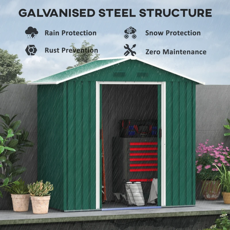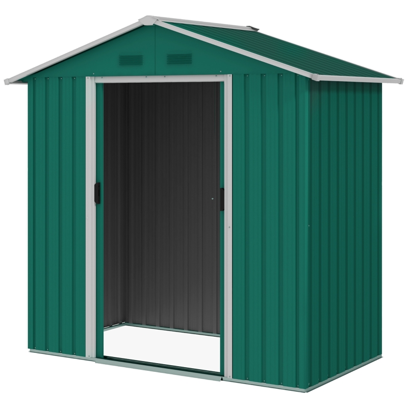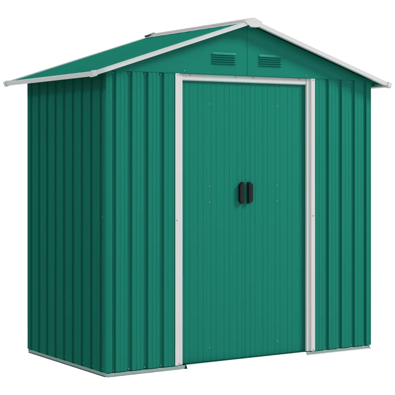 Best 6.5ft x 3.5ft Metal Garden Storage Shed for Outdoor Tool Storage with Double Sliding Doors and 4 Vents, Green