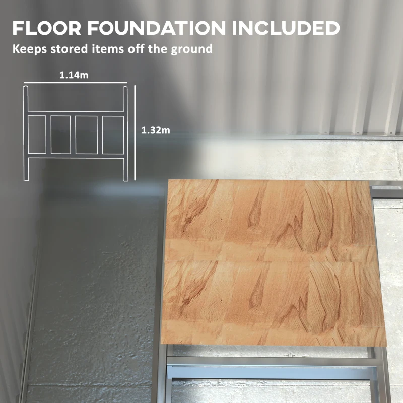 7 x 5ft outdoor storage shed: Store garden tools and equipment. Large enough for bikes or long-handled rakes and shovels. || Two hooks and two adjustable shelves: Easy organisation inside this lean-to shed, for holding and hanging smaller items. || Galvanised steel shell, with sliding door: Metal storage shed is outdoor ready. Strong and stable, it is resistant to water and UV damage. Door means shed is easy to enter and leave. || Two ventilation slots: Brings air inside metal garden shed, helps keep it fresh. || Dimensions: 160/181H x 154W x 206.5Dcm. Inner: 137W x 181Dcm. Gloves included to use during setup. 2-3 people recommended to build.