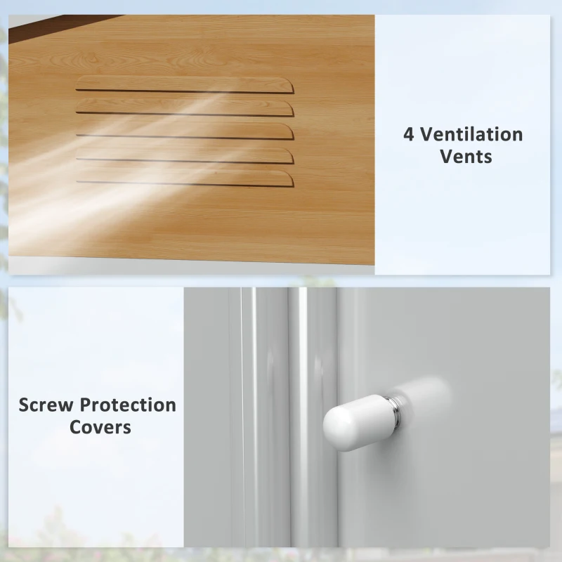 Spacious storage: Lots of room for garden tools, equipment, furniture and outerwear in this large metal garden shed. || Galvanised steel shell: A tough piece, suitable for use all-year round. Metal garden shed is resistant to rusting. || Four ventilation slots: Two on the front and two on the back, keeps metal garden storage inside cool and airy for freshness. || Double door shed: Slides open for easy access in and out this metal bike shed. Locks for extra security. || Dimensions: 196H x 236L x 171W cm. Assembly required – three people required for installation in approx. three hours – ALWAYS wear gloves. Do not build during windy weather conditions. Foundation kit is not included.
