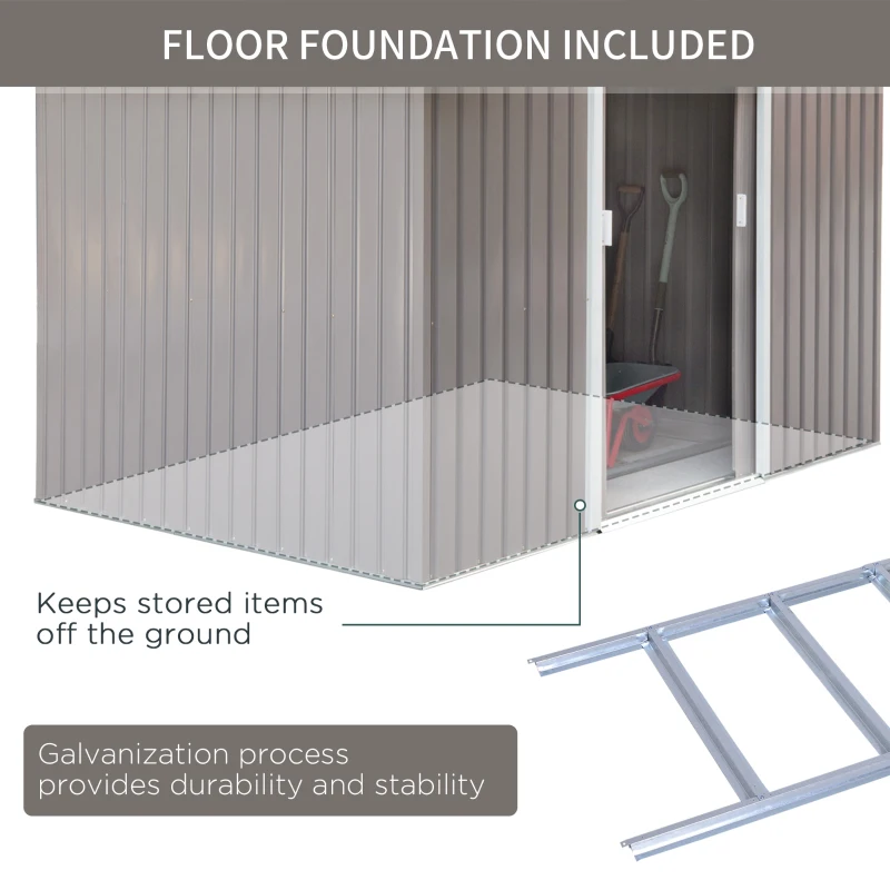 LARGE STORAGE SPACE: Our garden tool shed’s spacious design for plenty of storage room for your gardening equipment, tools and outdoor equipment. || COLOUR STEEL: Finished with a top coat for weather protection, our large shed is strong and durable for long-lasting use in your garden. || SLOPED ROOF: Allows water to roll down to the ground, preventing build up, stagnation and rust damage. || DOUBLE DOOR SHED: Allows easy access metal garden shed with base inside and keeps everything out of site from neighbours etc. || VENTILATION SLOTS: Two on the front and two on the back, allows air to sufficiently circulate around inside this galvanised shed, preventing any moisture and mildew build up. Your bike can be stored without rusting. || ASSEMBLY REQUIRED: All pre-cut and pre-drilled parts included. Floor foundation also included. RECOMMEND 2-3 PEOPLE TO INSTALL IT TOGETHER. WEARING GLOVES WHEN INSTALLING IS ADVISED. Note: Please read the instructions or assembly video carefully before installation to shorten the installation time.