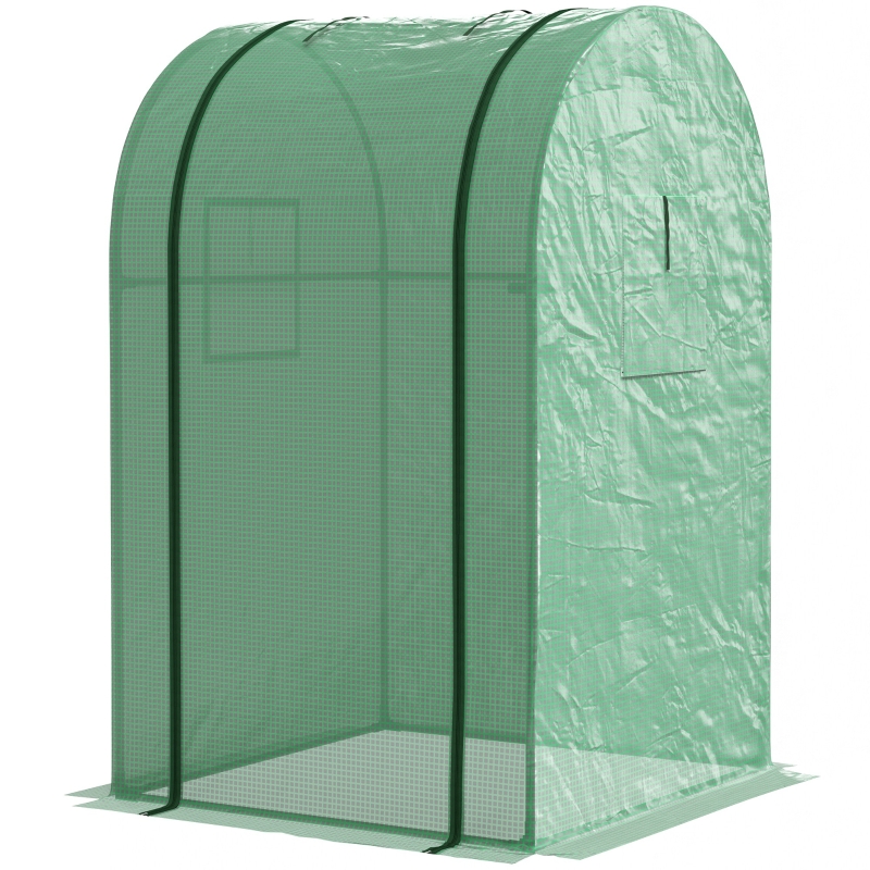 Small and compact: Miniature size, you can set it up almost anywhere. Great for growing tomatoes, flowers and other small batches of plants || Roll-up door and two windows: Easy to enter inside portable greenhouse. Windows to allow fresh air inside || Three-layer plastic cover, with extended edges: Reinforcement grid for extra durability, UV-resistant cover of small greenhouse protects plants as they grow, allowing 85% nourishing sunlight to pass through. Bury the edges into soil for extra steadiness || Steel frame: Powder-coated for extra strength, it is resistant to rust and corrosion for extended use || Dimensions: 150H x 94W x 94Dcm. Door: 150H x 72Wcm. Easy to assemble – two people recommended