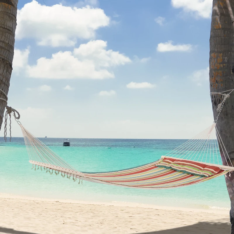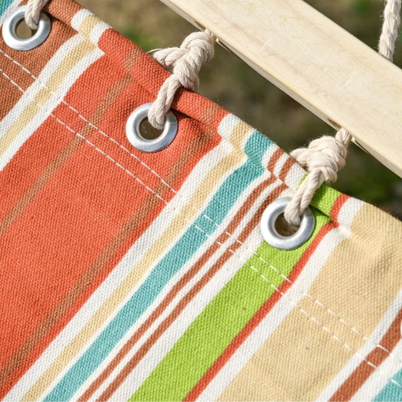 MODERN DESIGN AESTHETIC: Featuring a uniquely modern shape with a stylish and contemporary steel and cotton design. And the vibrant light-colored stripes of the canvas hammock provide perfect aesthetic to your outdoor life || DOUBLE-PERSON LOUNGING: It’s comfortable and roomy enough for two people to really stretch out in style and read a book, watch a movie, play a game, or simply nap the day away in our indoor hammock. || WIDE USAGE: This garden hammock provides an ideal lounging when you go on a vacation on a beach, go hiking in the forest, or take a nap in your courtyard on weekends || TRUE RELAXATION: With this portable hammock, we do not need to waste time setting it up. Which means more time for relaxation with the comfortable pillow || DIMENSION: Hammock Bed Size: 188L x 140Wcm; Weight Capacity: 150kg