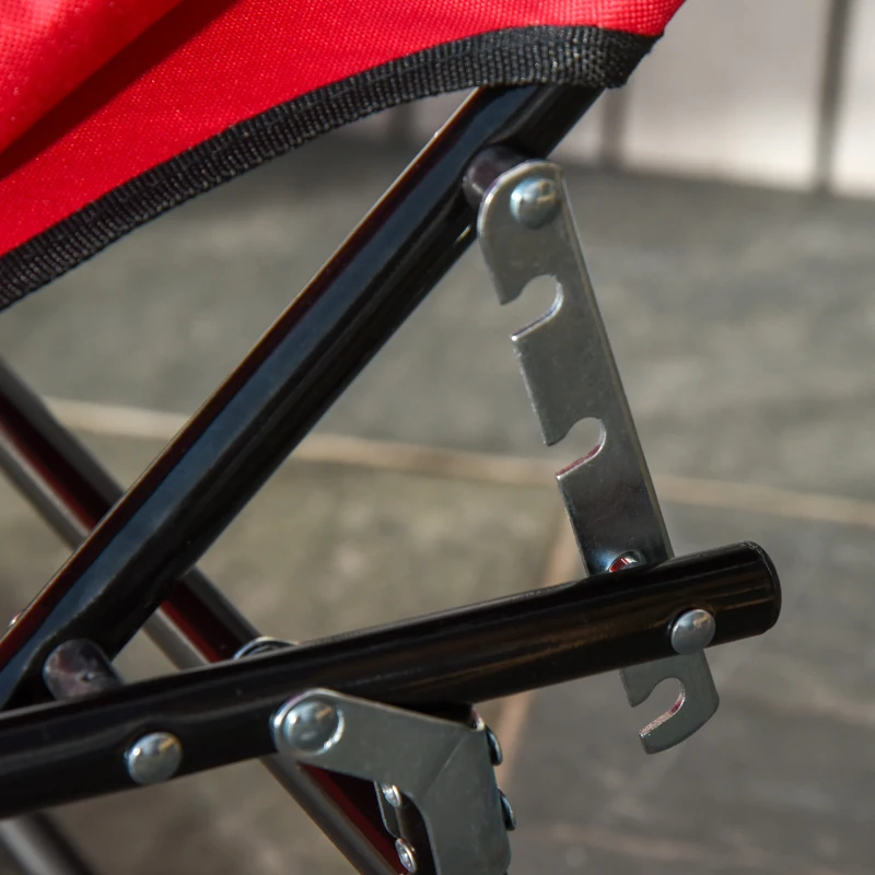 Best Foldable Outdoor Sun Lounger Adjustable Backrest Reclining Chair with Pillow and Reading Hole Garden Beach, Red