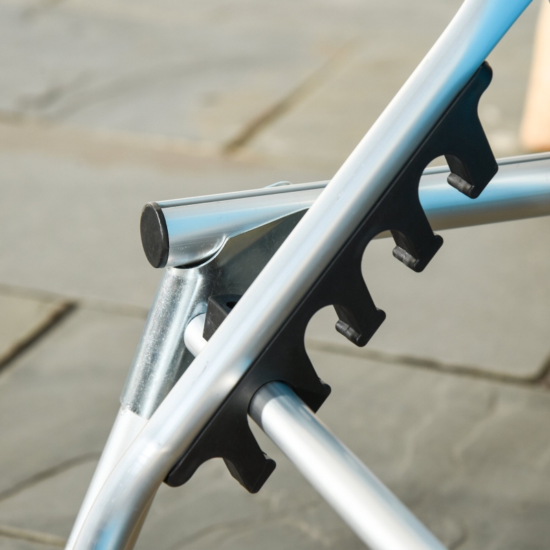 TRI-FOLD DESIGN: Closes to a third of the size, making the folding sun lounger easy to carry and store. Great for keeping in your car and using on weekend trips. || FOUR-POSITION BACK: This garden sun lounger with various angles, easy to adjust and set to most comfortable when you lie back. The second half of the seat can be put down to a reclining position NOTE: The lowest adjusting slot is NOT usable || ALUMINIUM FRAME: This portable sun lounger made of strong structure, supporting your body when relaxing. Foot pads on each corner, keeps it balanced. || TEXTELINE SEAT: Soft fabric holds your body, with removable pillow for comfort and support. DIMENSIONS: Upright: 76H x 165L x 60Wcm. Flat: 28H x 189L x 60Wcm. || MAXIMUM LOAD 120KG. EASY TO ASSEMBLE.