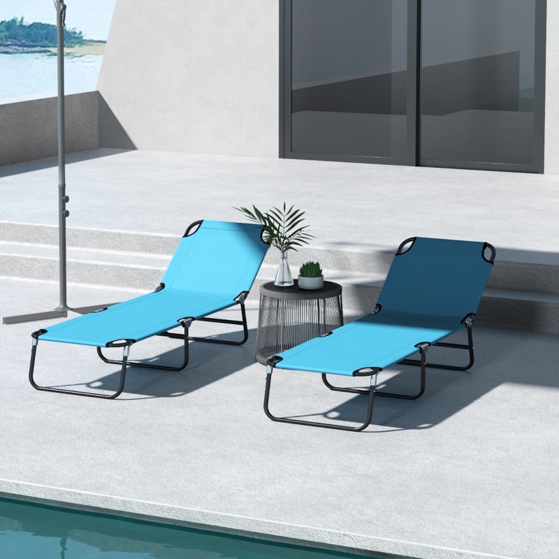 Best Foldable Sun Lounger Set of 2 with 5-Position Adjustable Backrest, Outdoor Portable Recliner Chaise Lounge Chair with Breathable Mesh Fabric, Sky Blue