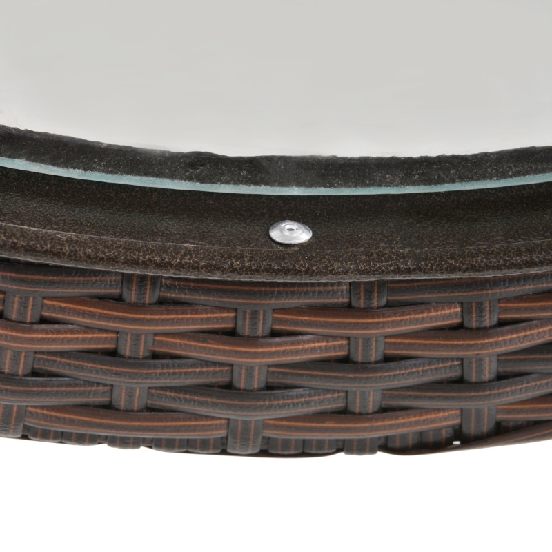 Glass table top: 5mm thick, gives you a solid and safe holding space for outdoors. || Robust: Steel frame is tough and solid, with a PE rattan edge for extra durability and protection. || Foldable: Easy to close, carry and store. Can be packed away and set up outside whenever. || Stylish: Rattan tabletop is embedded with water ripple tempered glass, great for decorating your garden, patio, or balcony. || Dimensions: 68L x 68W x 73H cm. Folded: 68L x 11W x 100H cm. Maximum load 50 kg. No assembly required.