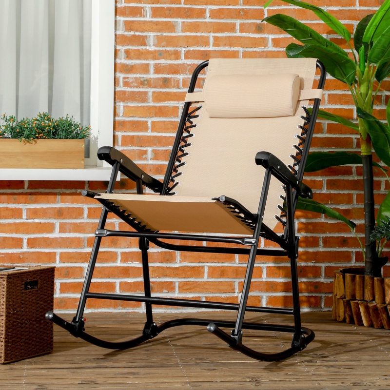 Best Folding Rocking Chair Outdoor Portable Zero Gravity Chair w/ Headrest Beige