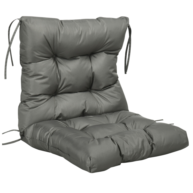 Back chair cushion: A replacement for dining and patio chairs, bringing revitalised comfort. || Thick filling: Sink into comfort as you relax, thanks to this patio seat cushion. || Fabric cover: Smooth on the skin. Fade and stain resistant. Suitable for indoor and outdoor use. || Tie fastenings: Easy to fix this seat cushion onto your furniture, so it doesn’t move around. || Dimensions: 112L x 56W x 10Dcm. Back: 56Lcm. Seat: 56Lcm.