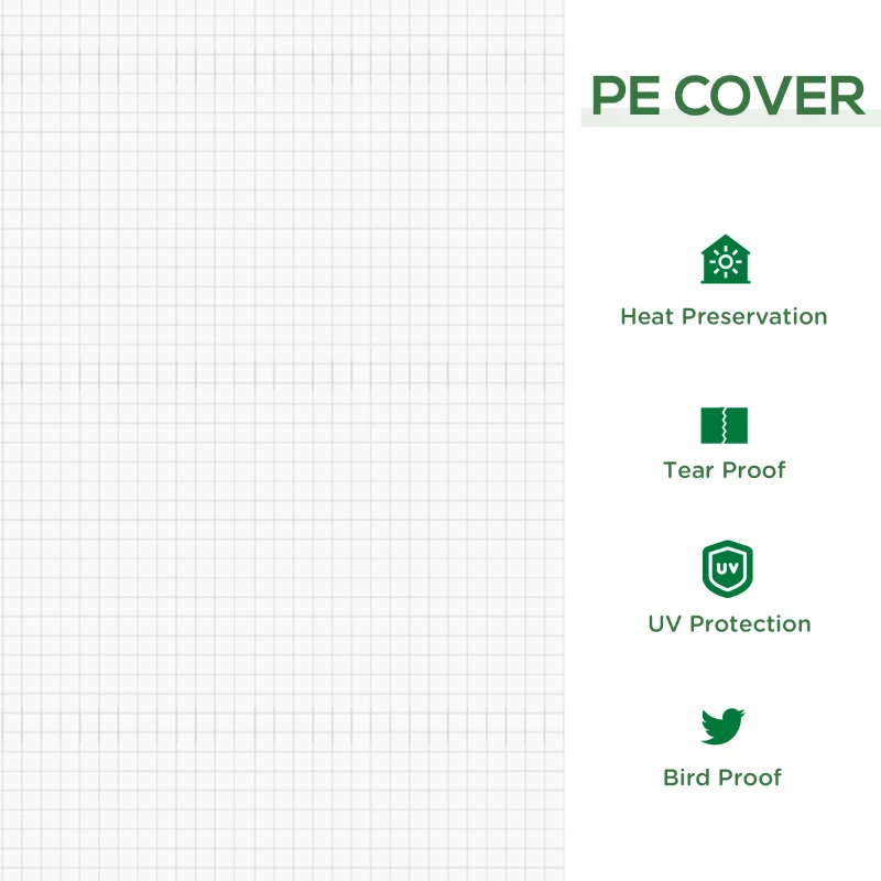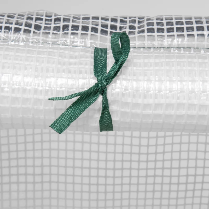 WIDE AND LOW DESIGN: Portable design is perfect for placing in small spots, allows you to garden virtually almost anywhere. A great addition to balconies and patios. || STEEL FRAME: Powder coated for extra strength, it features five cross bars and plastic connectors to ensure long-lasting use all year round. || PLASTIC MESH COVER: Protects your plants, vegetables and more from the mild wind and light rain, whilst allowing sunlight and air to pass through to promote steady and healthy growth. || ROLL-UP DOORS: With zip fastenings for quick and easy access in and out. || DIMENSIONS: 90H x 180L x 90Wcm. EASY TO ASSEMBLE. NOTE: Not suitable for bad weather conditions.