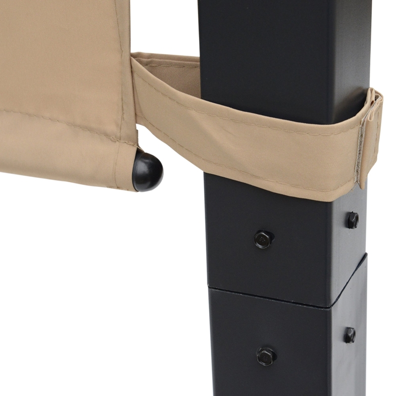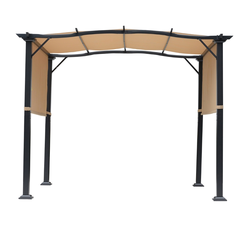 RETRACTABLE CANOPY: Easy to adjust and fix to a position on either side – this metal pergola protects you from the sun at any time of day. || STEEL FRAME: Power coated and fitted with beams for extra strength, this frame of garden pergola is tough and stands steadily in place. || UV-RESISTANT: Shields you from any damaging sun rays so you can relax outdoors safely under the pergola kit. || DIMENSIONS: 2.3H x 2.96L x 2.45Wm. Pergola Canopy: 4.7m. || EASY TO ASSEMBLE.