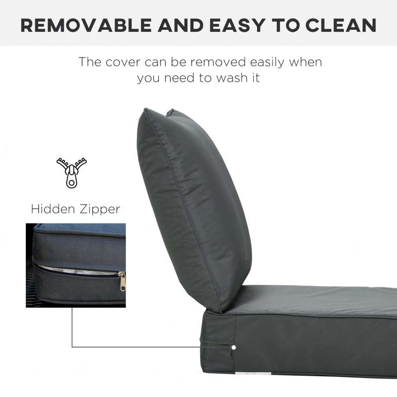 FOUR-PIECE SET: Comes with two separate seat and back cushions – can position it how you want on the chair, or spread between four. || THICK FILLING: 15cm sponge for you to sit in comfort – great for relaxing during those long afternoons in the garden and outdoor areas. || OLEFIN COVER: Smooth and soft for extra comfort. Resistant to stains and fading. Removable and washable to keep clean. || DIMENSIONS: Seat cushion: 61L x 61W x 15Dcm. Back cushion: 63L x 55W x 15Dcm. || NO ASSEMBLY REQUIRED – UNPACK AND START ENJOYING STRAIGHT AWAY. NOTE: Please measure your cushion size carefully before buying.