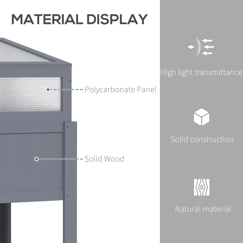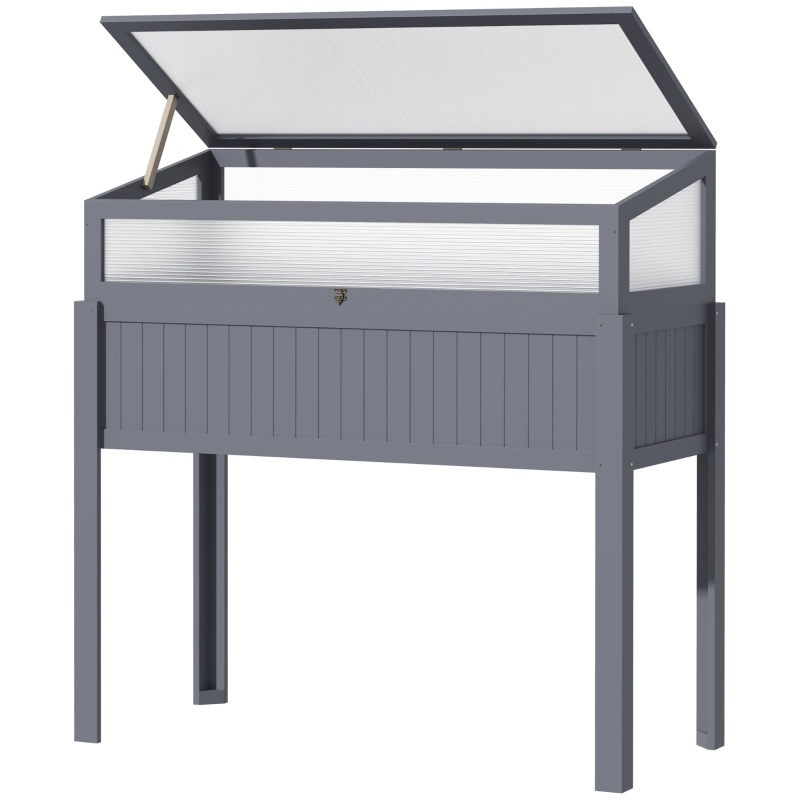 2-IN-1 DESIGN: Cold frame and elevated planter box, can be used together or separately, depending on your usage demands. || FIR WOOD: Strong structure, with protective paint covering for protection. Greenhouse is suitable for outdoor use. || OPENABLE ROOF: Allows fresh air inside to regulate the temperature. Sloped to prevent rainwater from building up. Transparent for sunlight to pass through for growth. || BOTTOM GAP: Excess water drains easily. DIMENSIONS: 120L x 54W x 112/122Hcm. || MAXIMUM LOAD 125KG. ASSEMBLY REQUIRED.