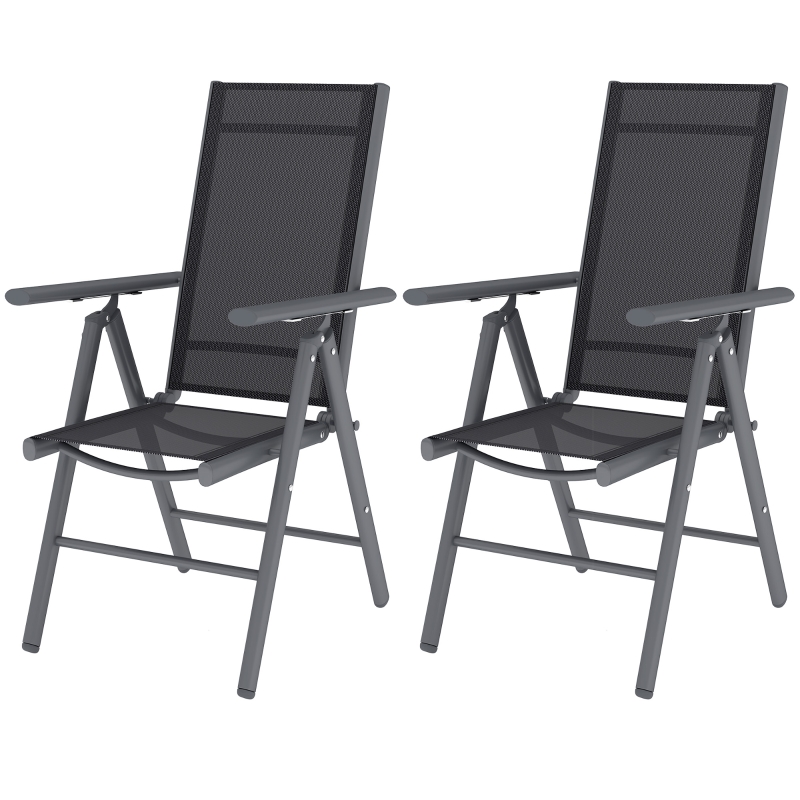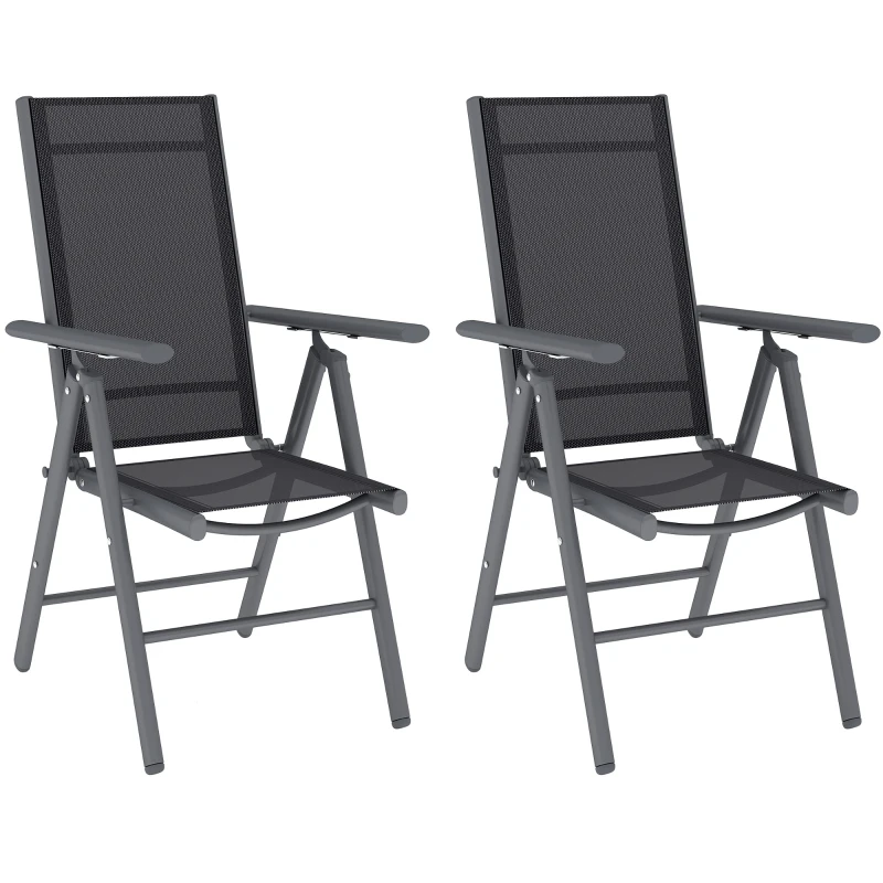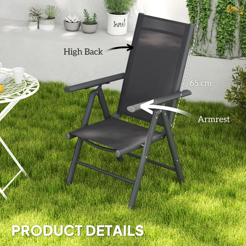 Best Set of 2 Folding Chair, Aluminium Frame Outdoor Camping Chairs with Breathable Mesh Back and Seat, Garden Chair Set with Armrests for Balcony, Dark Grey