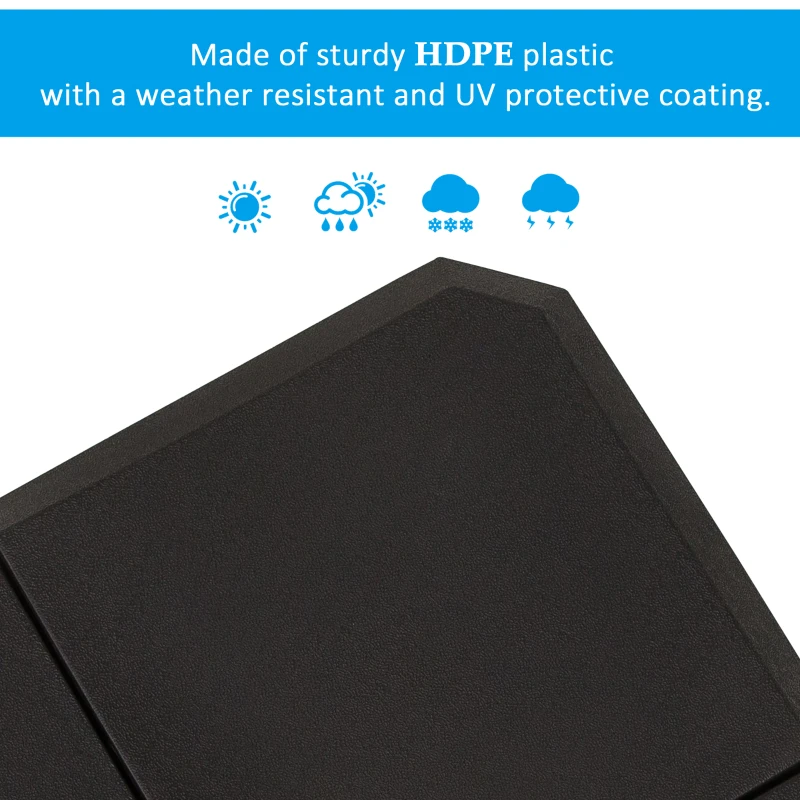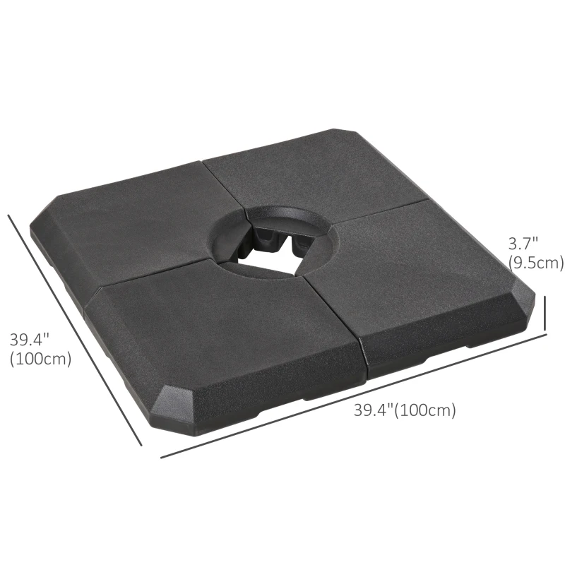 FOUR-PIECE BASE: Made for Cantilever and Roma parasols, keeps your Summer garden umbrella upright and in place against the wind and rain. || FILLABLE: 4 pcs totally takes 80kg water or 120kg sand – simply fill fully for it to be heavy €“ allowing you to fill up in your chosen spot without having to carry each piece when it’s full. Also easy to store away. || THICK PLASTIC BODY: A tough and very durable shell, which is protective against mild weathering and UV fading for long-lasting use. || DIMENSIONS: 9.5H x 100L x 100W. Cross bar: 100L x 100Wcm. FOR CROSS BAR BASES ONLY. CROSS BASE IS NOT INCLUDED. || EASY TO ASSEMBLE. MADE FOR CANTILEVER AND ROMA PARASOLS.