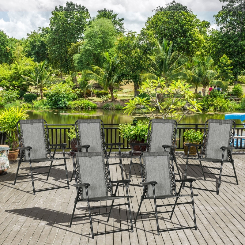 Best Set of 6 Patio Folding Chair Set, Garden Portable Outdoor Chairs with Armrest and Breathable Mesh Fabric Seat and Backrest, for Camping, Beach, Deck, Lawn, Grey
