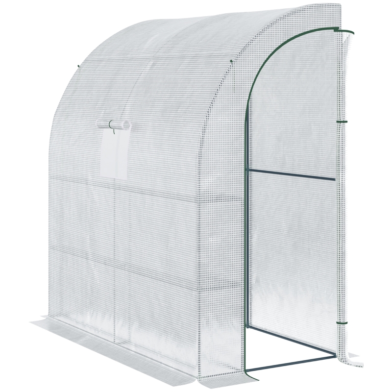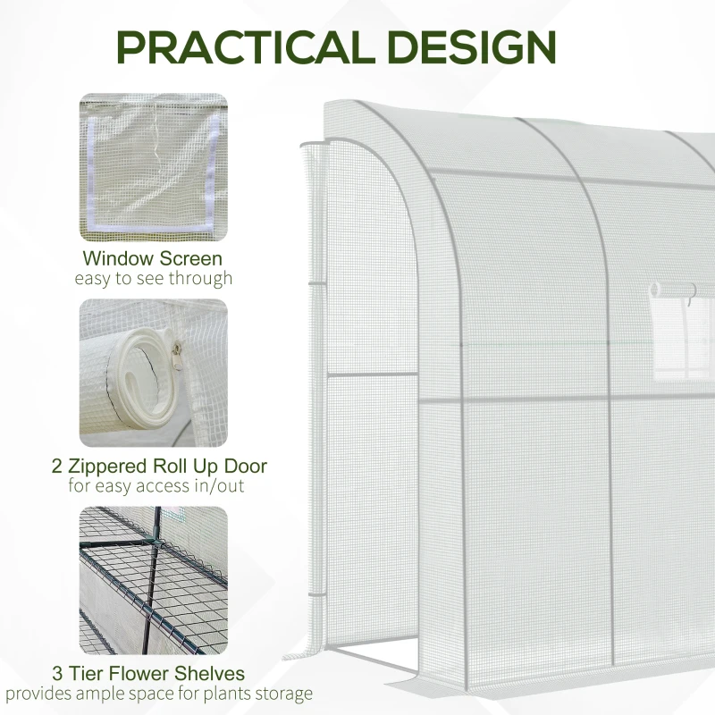 Best Walk-In Lean to Wall Greenhouse with Windows and Doors 2 Tiers 4 Wired Shelves 200L x 100W x 215Hcm White