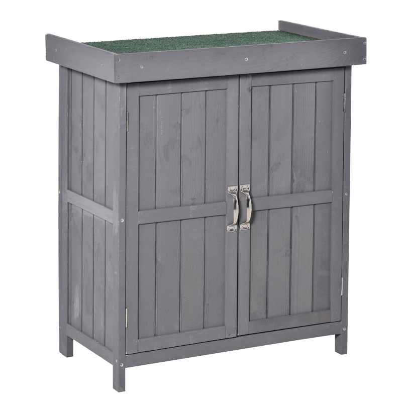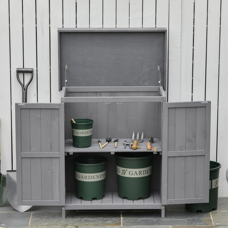 Best Wooden Garden Storage Shed with Hinged Roof and Shelves, Outdoor Storage Cabinet Chest, Double Doors, 74 x 43 x 88cm, Grey