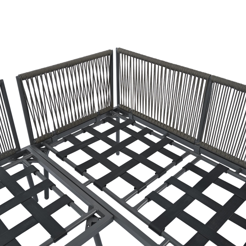 Modern Space-Saving L-Shaped Corner Sofa with Glass Coffee Table, Outdoor Garden Lounge Set for 4-5 People, 120L x 60W x 86H cm, Grey quantity